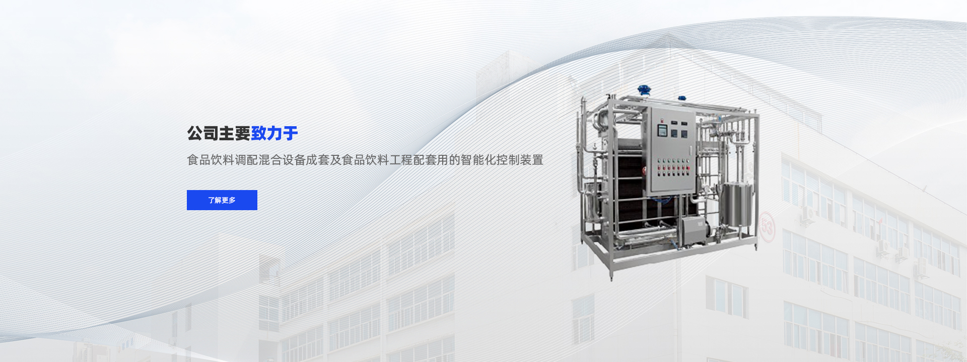 公司主要致力于食品飲料調(diào)配混合設(shè)備成套及食品飲料工程配套用的智能化控制裝置。主導產(chǎn)品為板式換熱器設(shè)備,板式成套殺菌機組、閃蒸脫氣裝置、流體輸送設(shè)備、分離攪拌設(shè)備及CIP自動清洗裝置等。 經(jīng)過公司全體員工的共同努力,產(chǎn)品已遠銷俄羅斯、哈薩克斯坦、烏茲別克斯坦,土庫曼斯坦,朝鮮、印尼、沙特阿拉伯、巴基斯坦,馬來西亞,越南,柬埔寨,菲律賓,泰國、尼日利亞,加納,阿爾及利亞,埃塞俄比亞,坦桑尼亞,埃及,薩摩亞,等國家和地區(qū)。